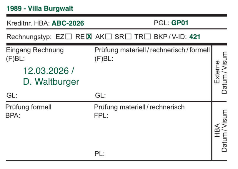 Derzeit erfolgt die Verarbeitung von Rechnungen manuell und erfordert repetitive Arbeiten: Ausdrucken und Stempeln, Zuweisung zu Projekten, Kontierung, Scannen, Anpassen der Rechnungsbeschriftung, Speichern, Freigabeprozesse mit manuellen Überprüfungen, Abgleichen mit dem Werkvertrag, Nachkalkulation der Konditionen und Verbuchung.